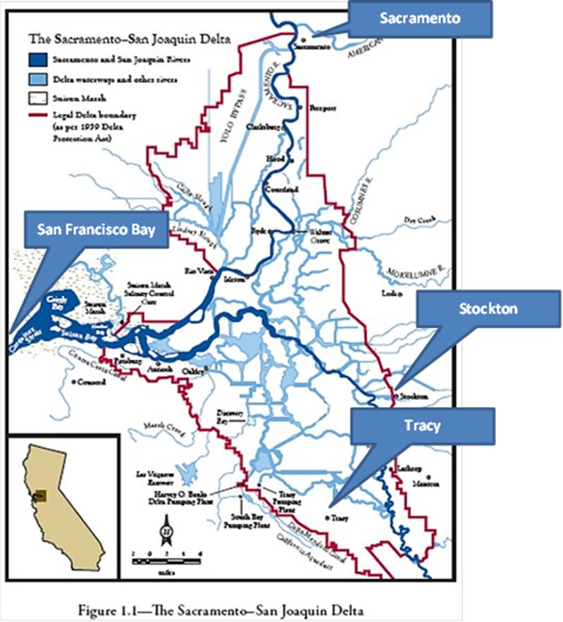 When it comes to aquatic challenges, the Delta suffers from almost the complete suite: water diversions, invasives (fish, plants, crabs, others), warming, rising sea level (the latter two are associated with climate change), no flood plain, saltwater intrusion, subsidence, water diversions, fish entrainment and mortality in pumping plants.